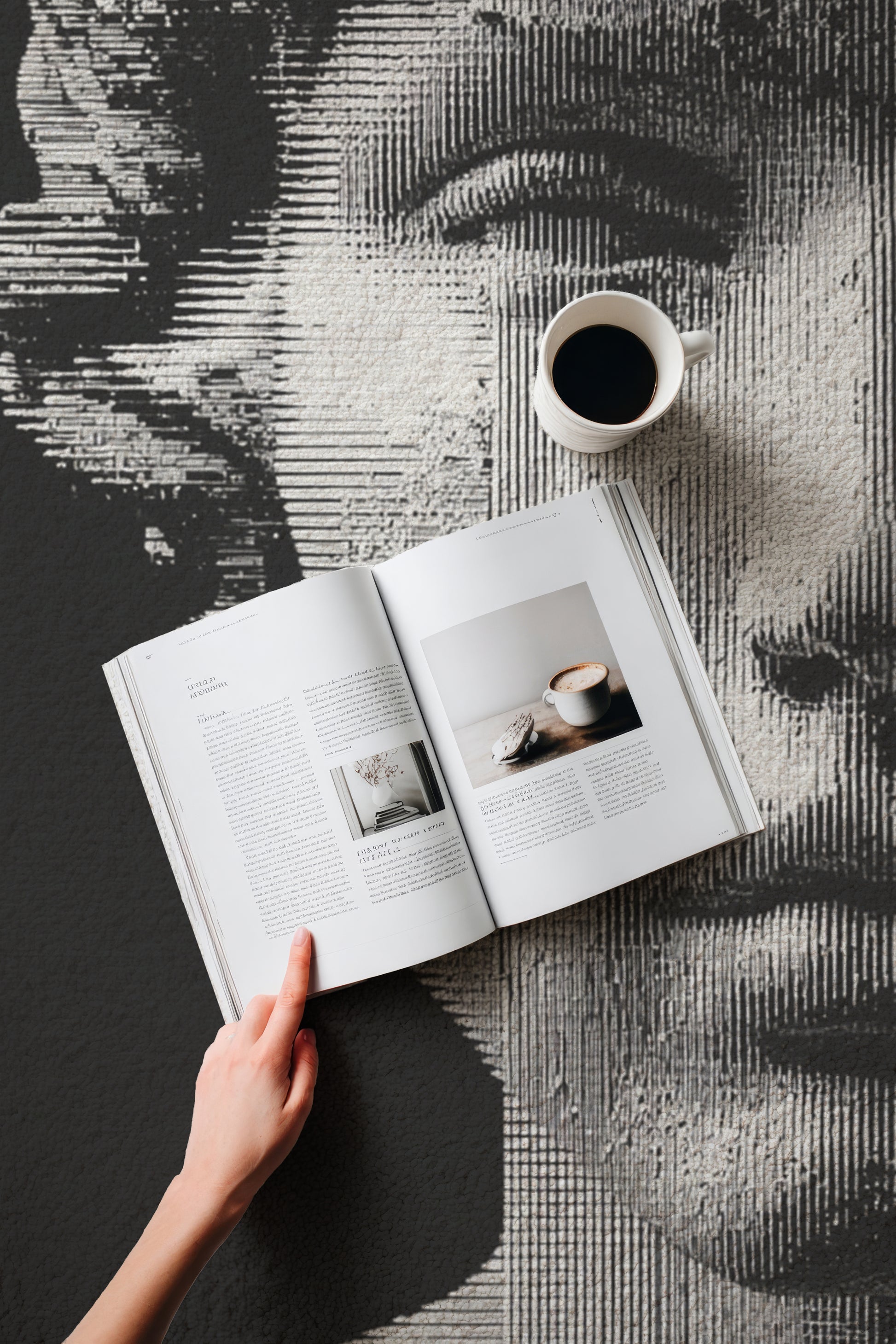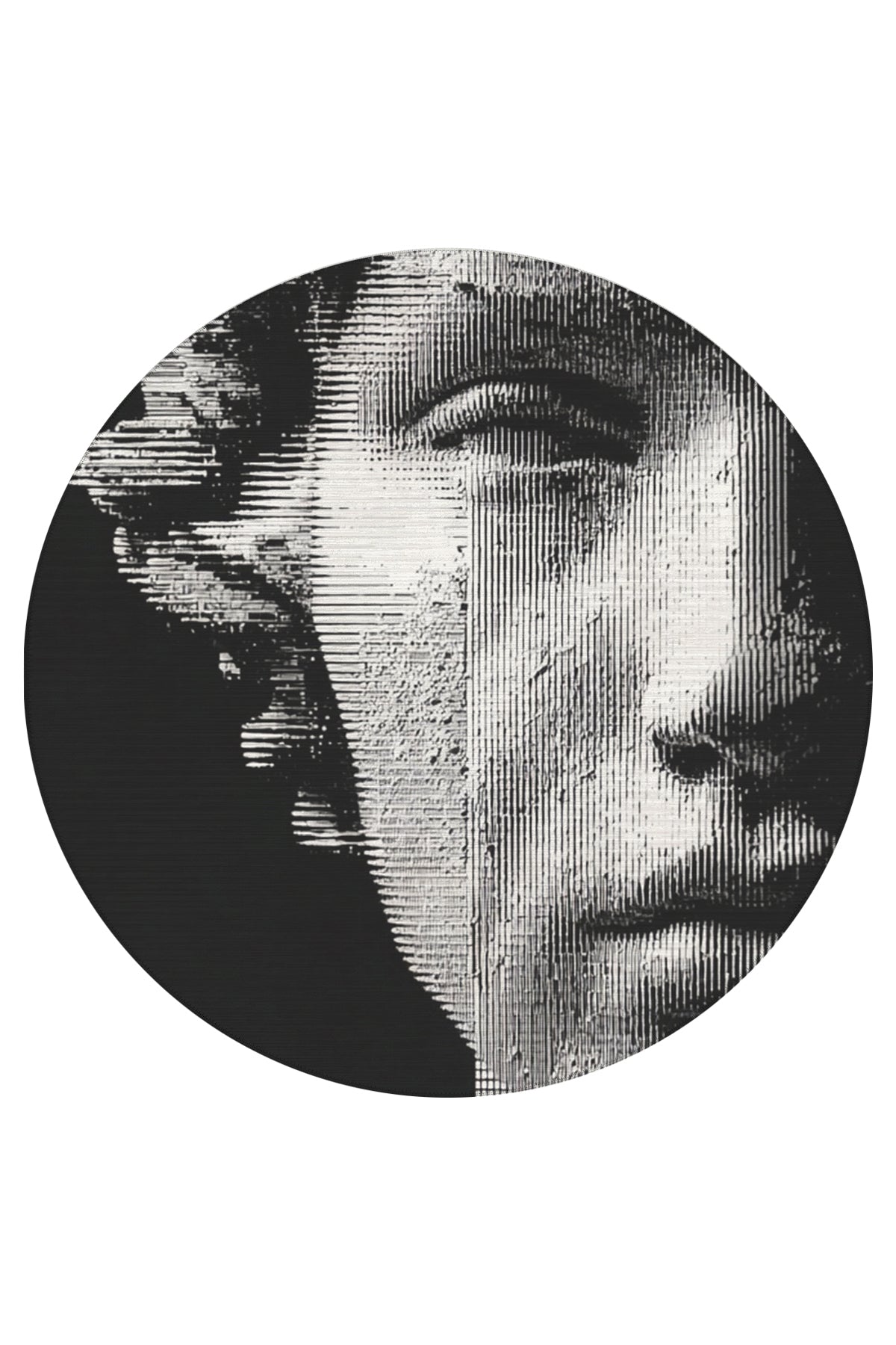 Allure 101 Siyah Beyaz Yüz Tasarım Halı Yıkanabilir Halı İnce Kilim Halı Oturma Odası Salon Halısı