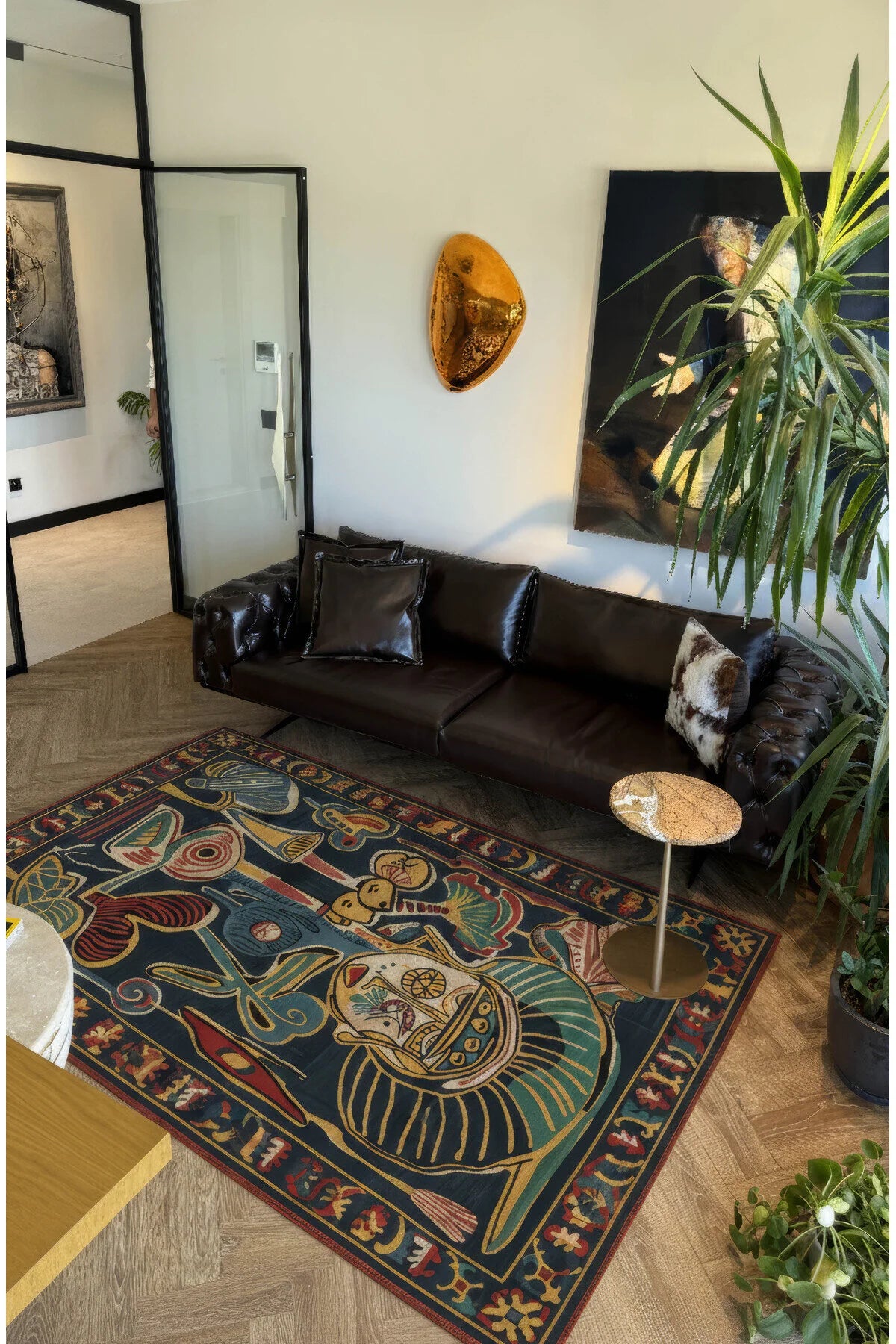 5 mm ince dokusu sayesinde zeminde pürüzsüz bir görünüm sunar ve robot süpürgelerle tamamen uyumludur. Yıkanabilir yapısı, kolay temizlik avantajı sağlarken; toz tutmayan, evcil dost ipliklerden üretildiği için hijyenik bir kullanım sunar. Güneşe ve ısıya dayanıklı canlı renkleri uzun süre ilk günkü görünümünü korur. Ofis, salon veya oturma odası gibi alanlarda modern bir sanat atmosferi oluşturur.