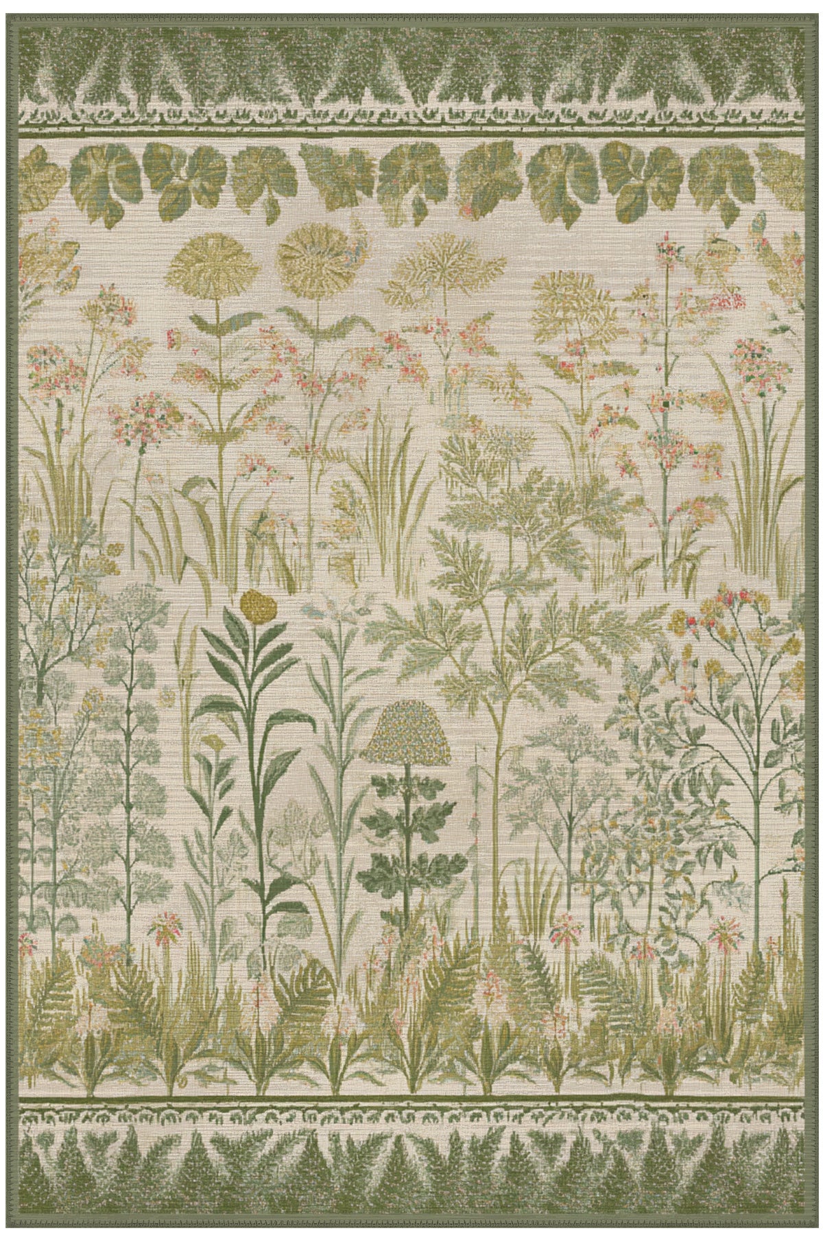 Garden 801 Yeşil Bej Çiçekli Halı Tasarım Halı Yıkanabilir İnce Halı Oturma Odası Salon Halısı