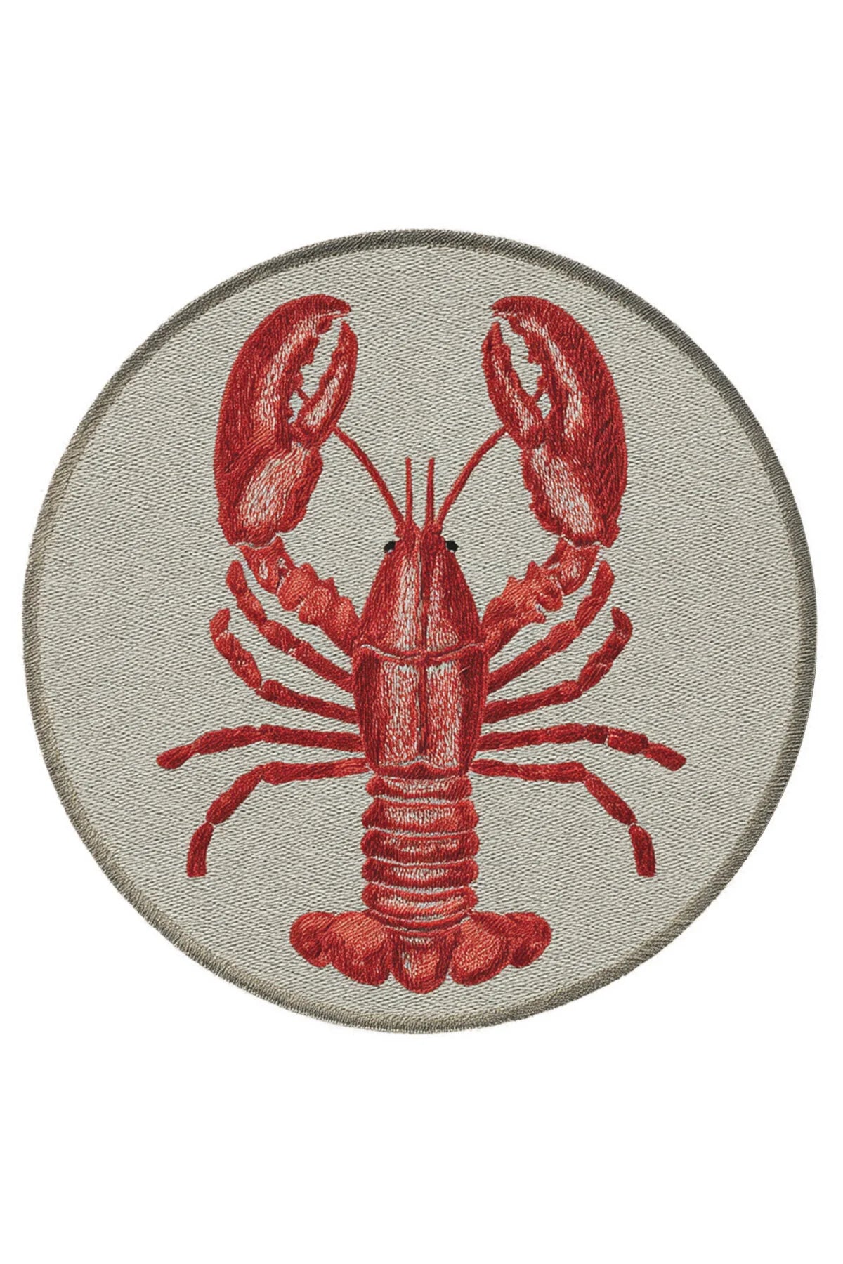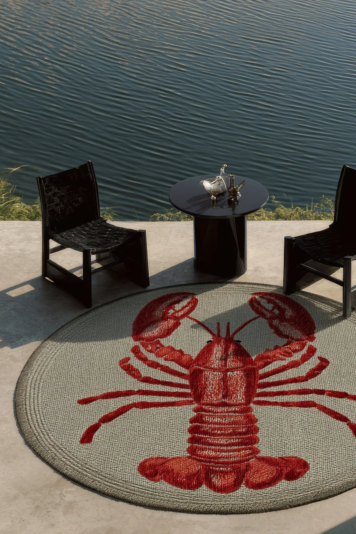 Marine 90 – Pastel Yeşil Kırmızı Istakoz Desenli Halı | Marin Esintili, Yuvarlak Formlu, İnce Dokulu, Yıkanabilir Tasarım