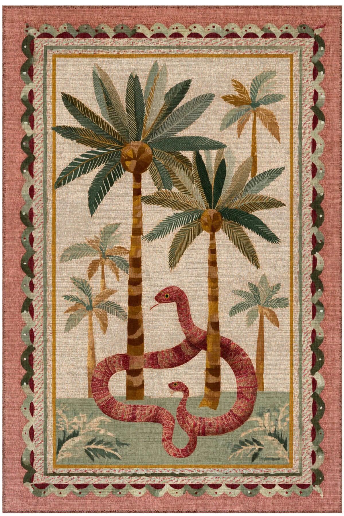 Canlı yeşil tonları, doğal kahverengiler ve sıcak mercan kırmızısı renk geçişleriyle evinizde tropikal bir ferahlık ve sofistike bir atmosfer yaratır.
