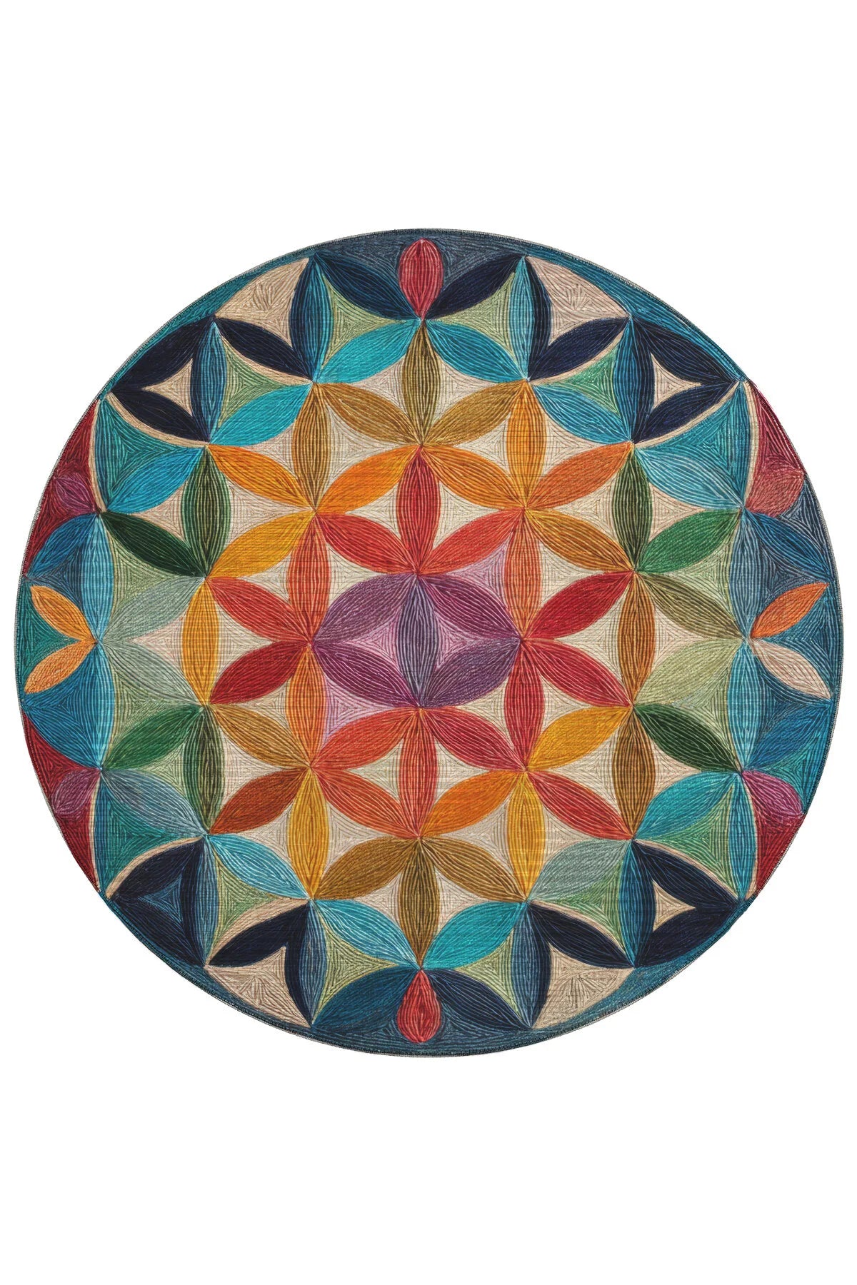 Porto 75 – Renkli Geometrik Soyut Sanatsal Tasarım | Yuvarlak, Yıkanabilir, İnce Dokulu Modern Halı