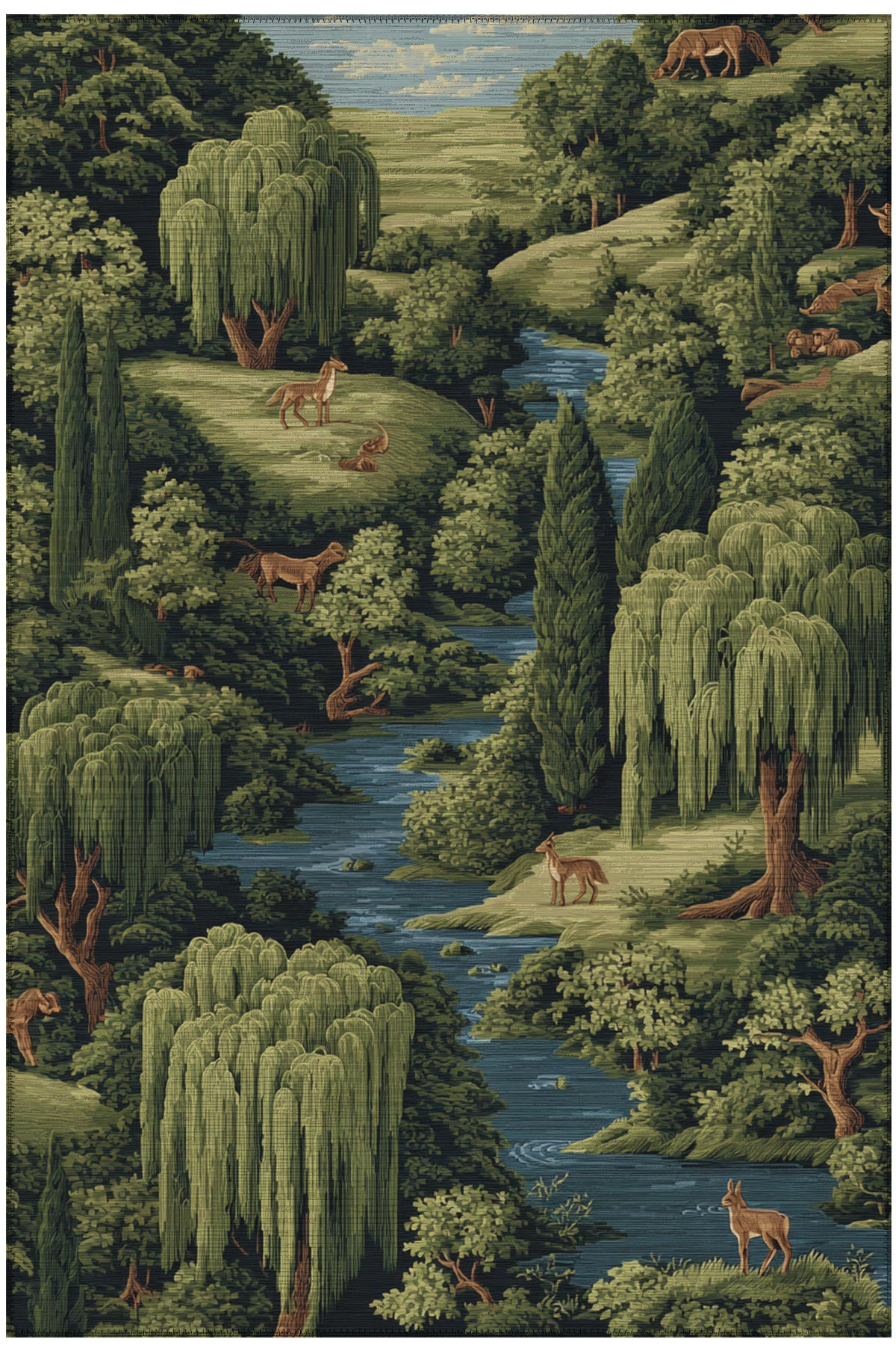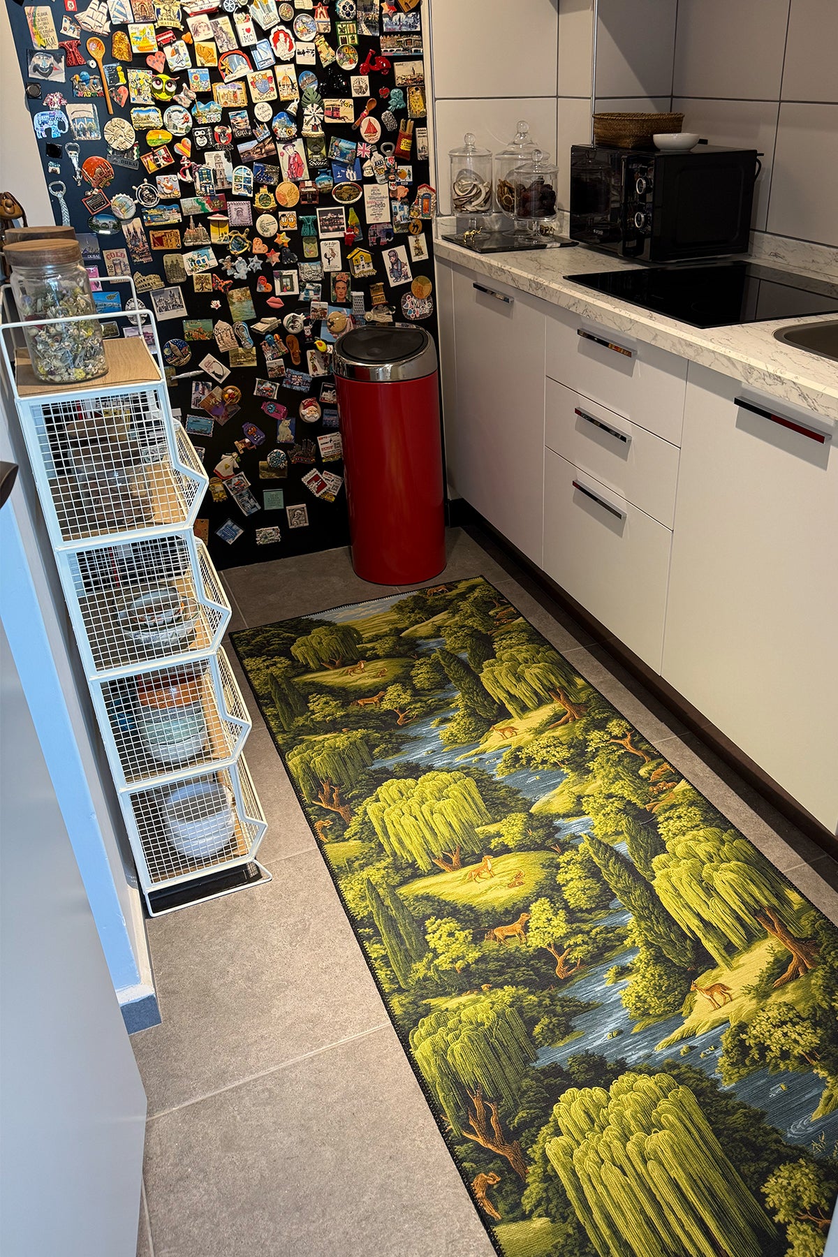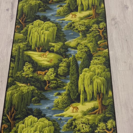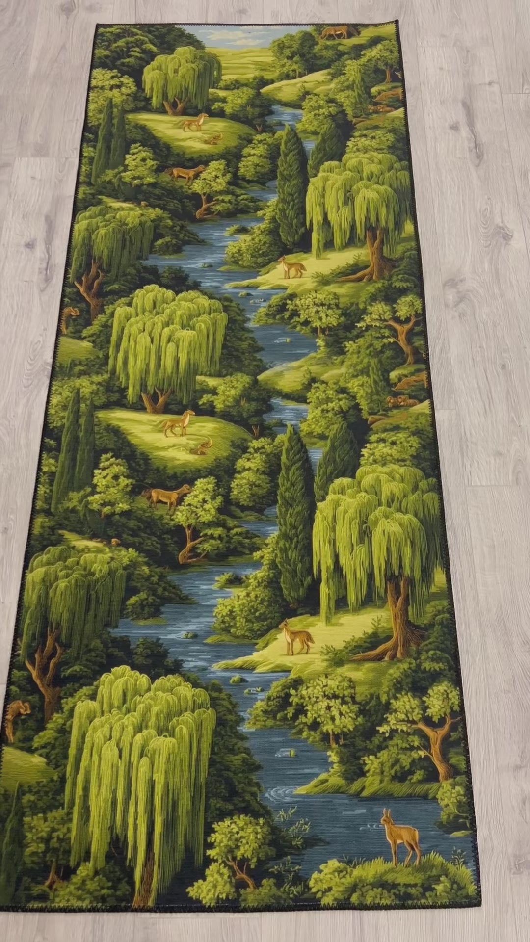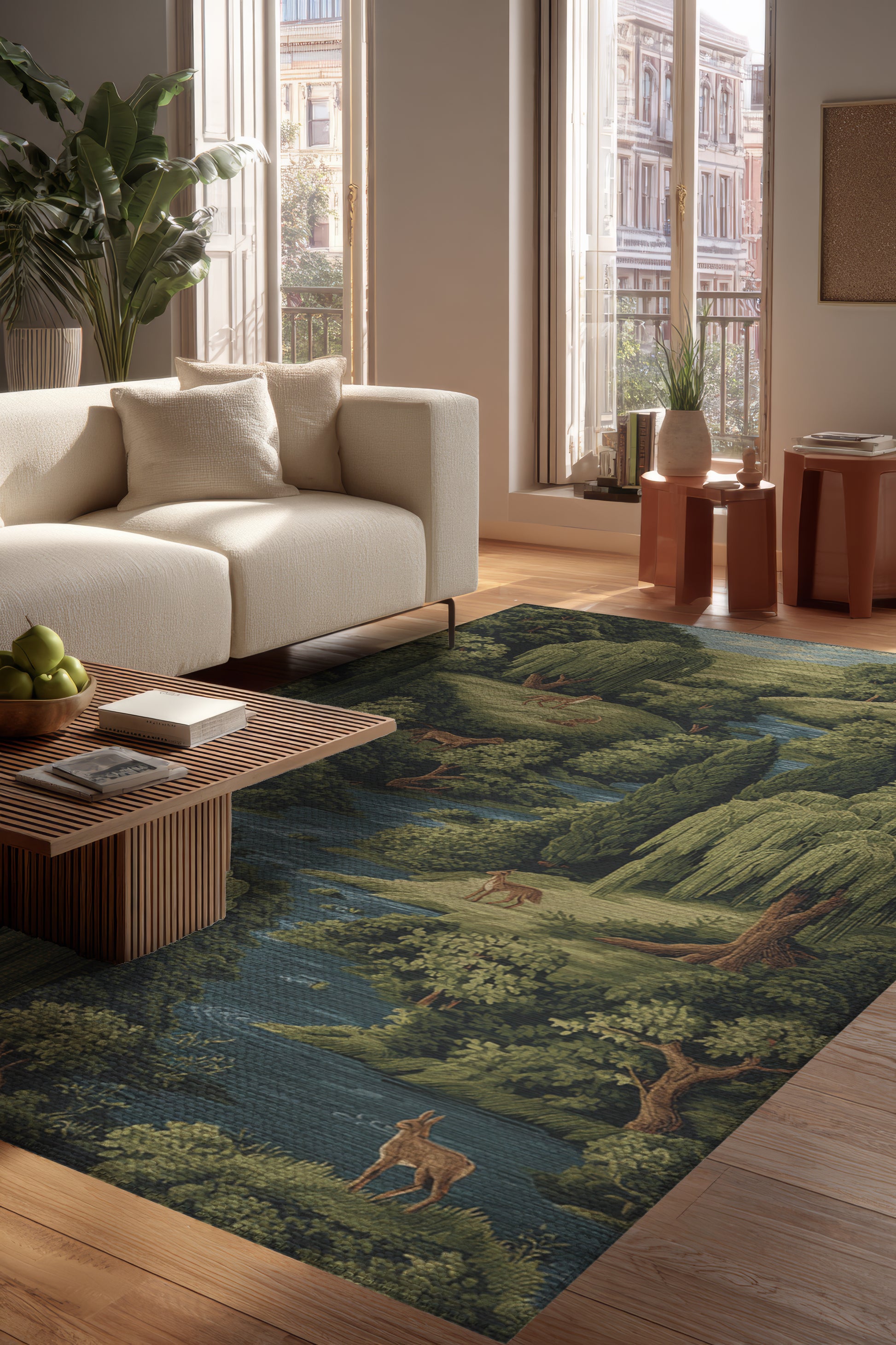 Rafel 903 Orman Temalı Botanik Desenli Halı Yıkanabilir İnce Dokuma Yolluk Salon Oturma Odası Halısı