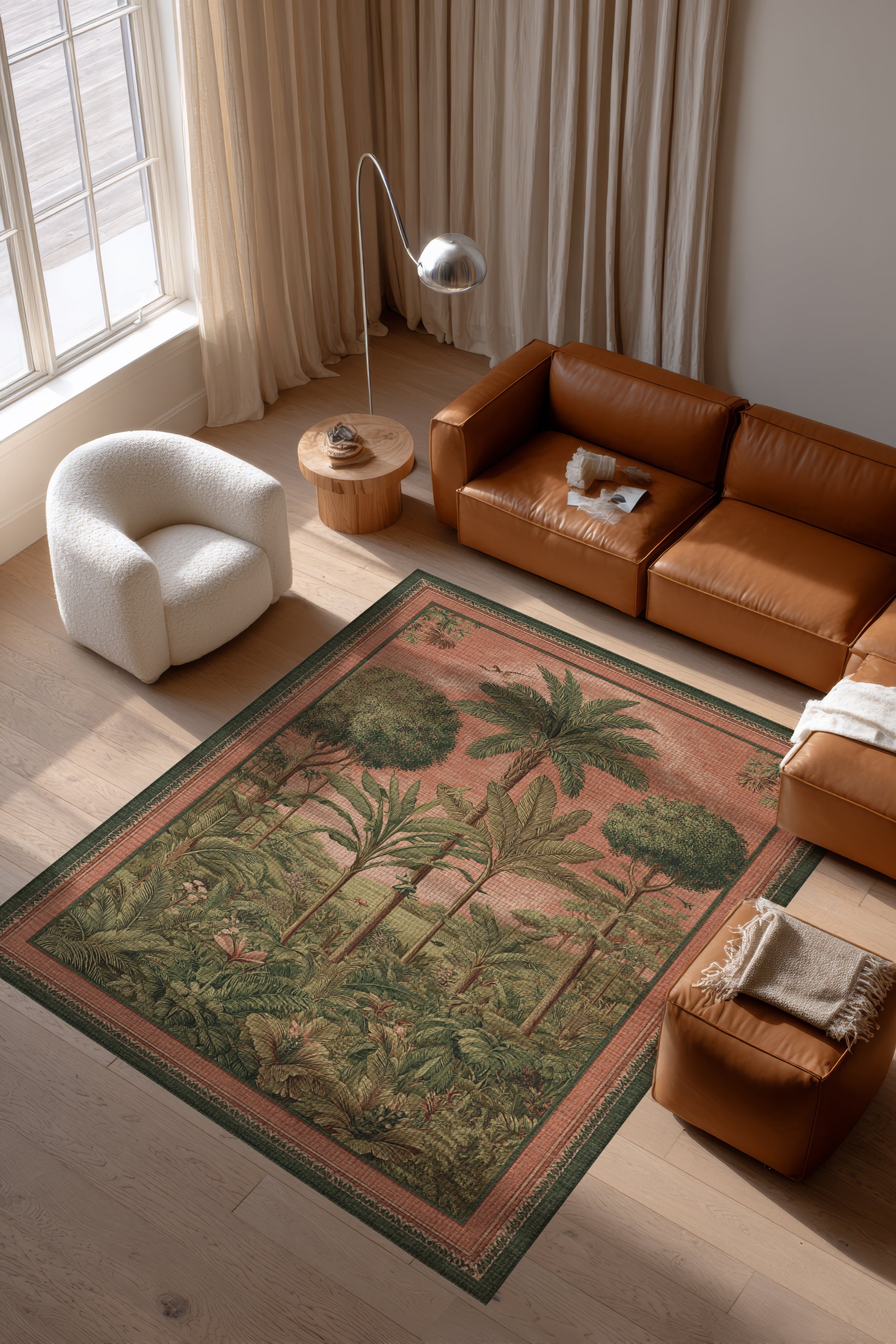 Egzotik Doğa Temalı Halı | Tropikal Dokunuşlar, İnce Dokulu, Yıkanabilir Dijital Baskı Tasarım
